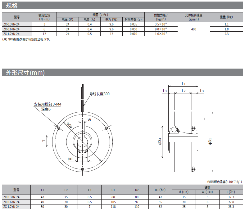 ZX-YN型磁粉制動(dòng)器額定扭矩:3~12(N·m)自然冷卻式貫通軸型超薄型額定電壓DC24V??蓮?r/min開始使用。